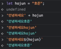 - let 뒤에 원하는 변수 이름을 적고 = 뒤에 값을 적으면 된다.