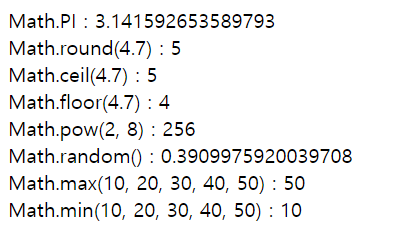 document.write(`Math.round(4.7) : ${Math.round(4.7)} <br>`); // round => 반올림